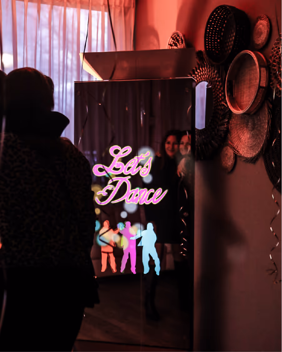 Een levensgrote interactieve spiegel waarin gasten zichzelf zien én direct de leukste foto’s maken. Met een tik op het scherm start de ervaring: foto’s, animaties en handtekeningen rechtstreeks op de spiegel. De Mirror Booth combineert fun met een luxe uitstraling en past perfect bij bruiloften, bedrijfsfeesten en high-end evenementen.